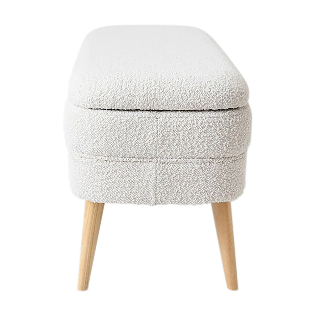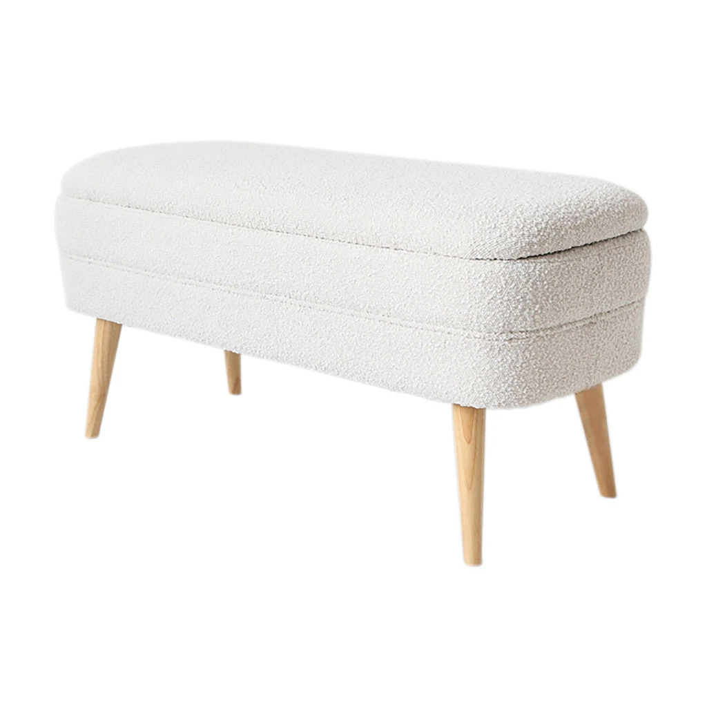 Apportez une touche de confort et d’élégance à votre intérieur avec le banc coffre bouclette blanc Eleonor.