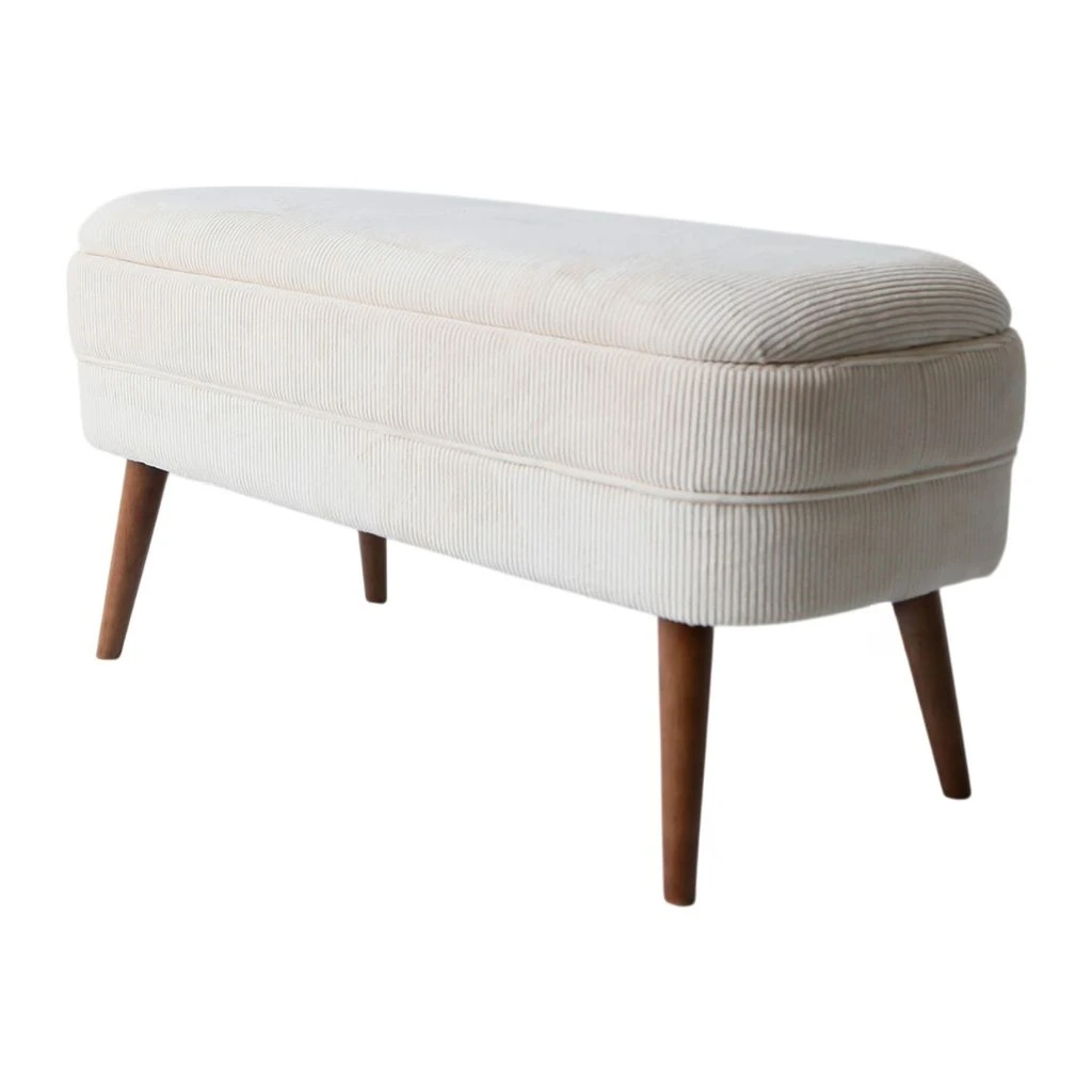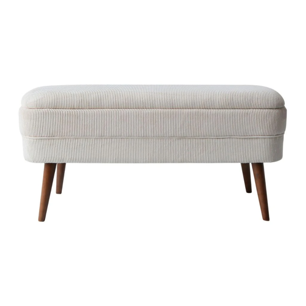 Découvrez comment le banc coffre en velours côtelé écru Eleonor peut transformer votre espace de vie grâce à son assise confortable et à son coffre de rangement.