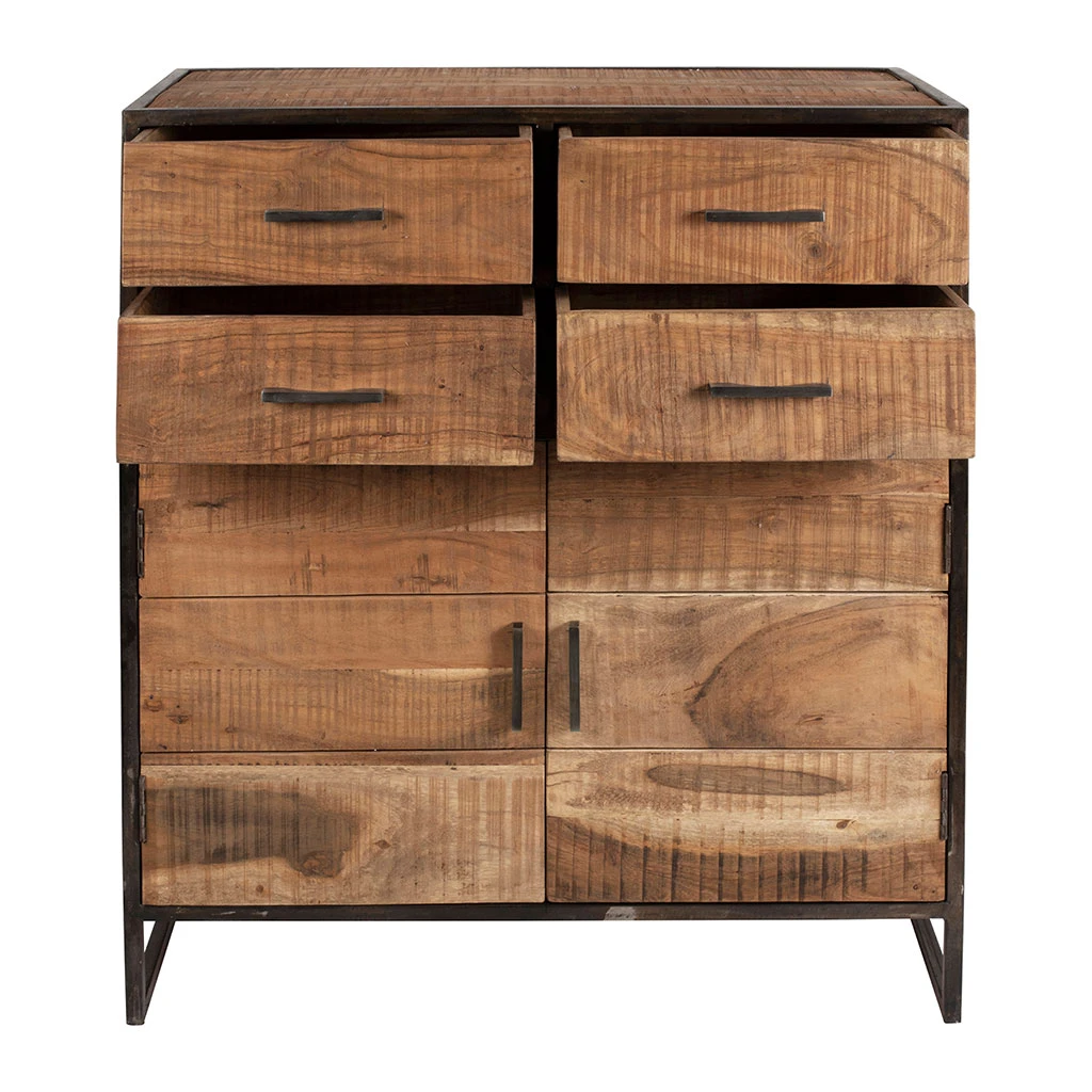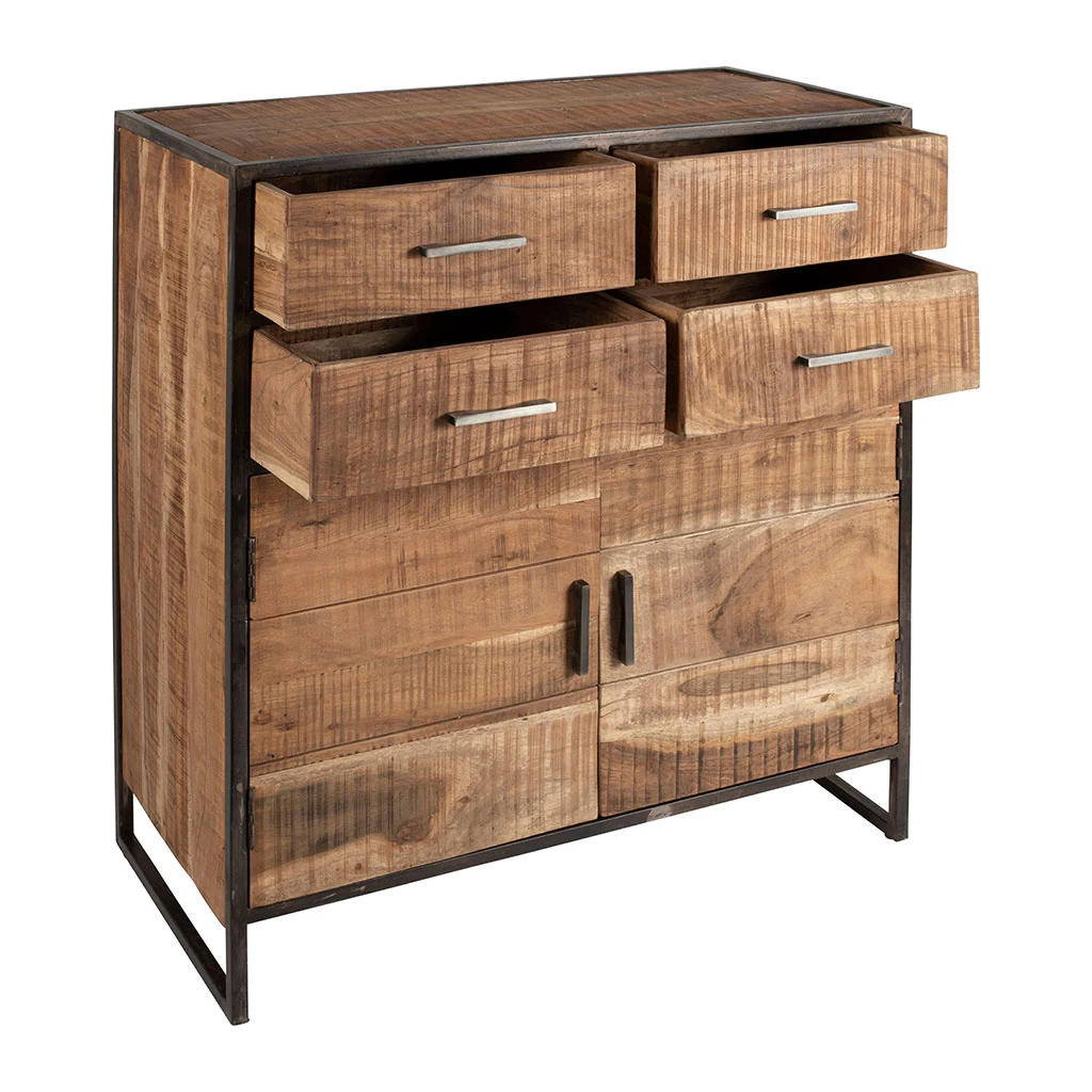 Créé dans un style industriel, en bois d’acacia et en fer,