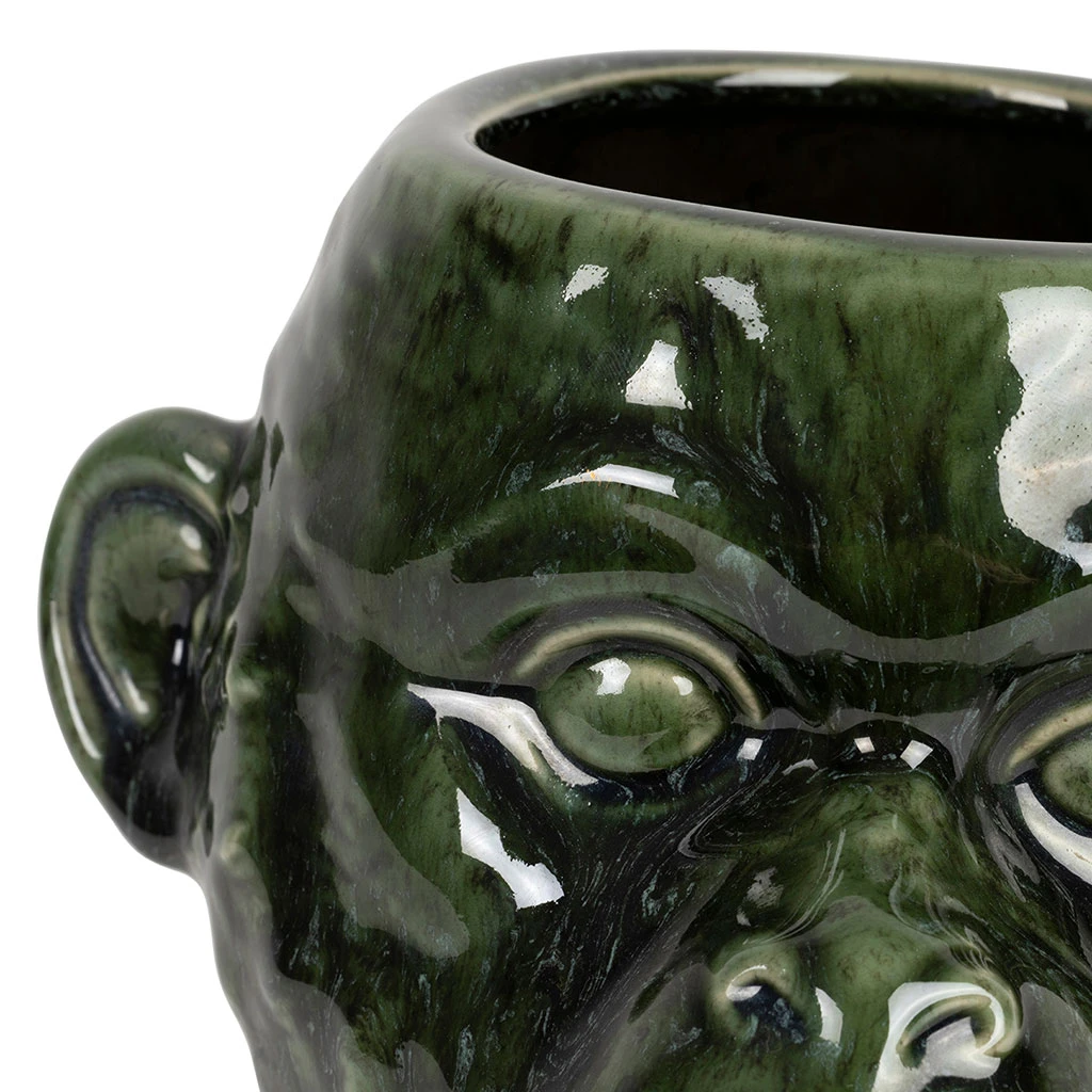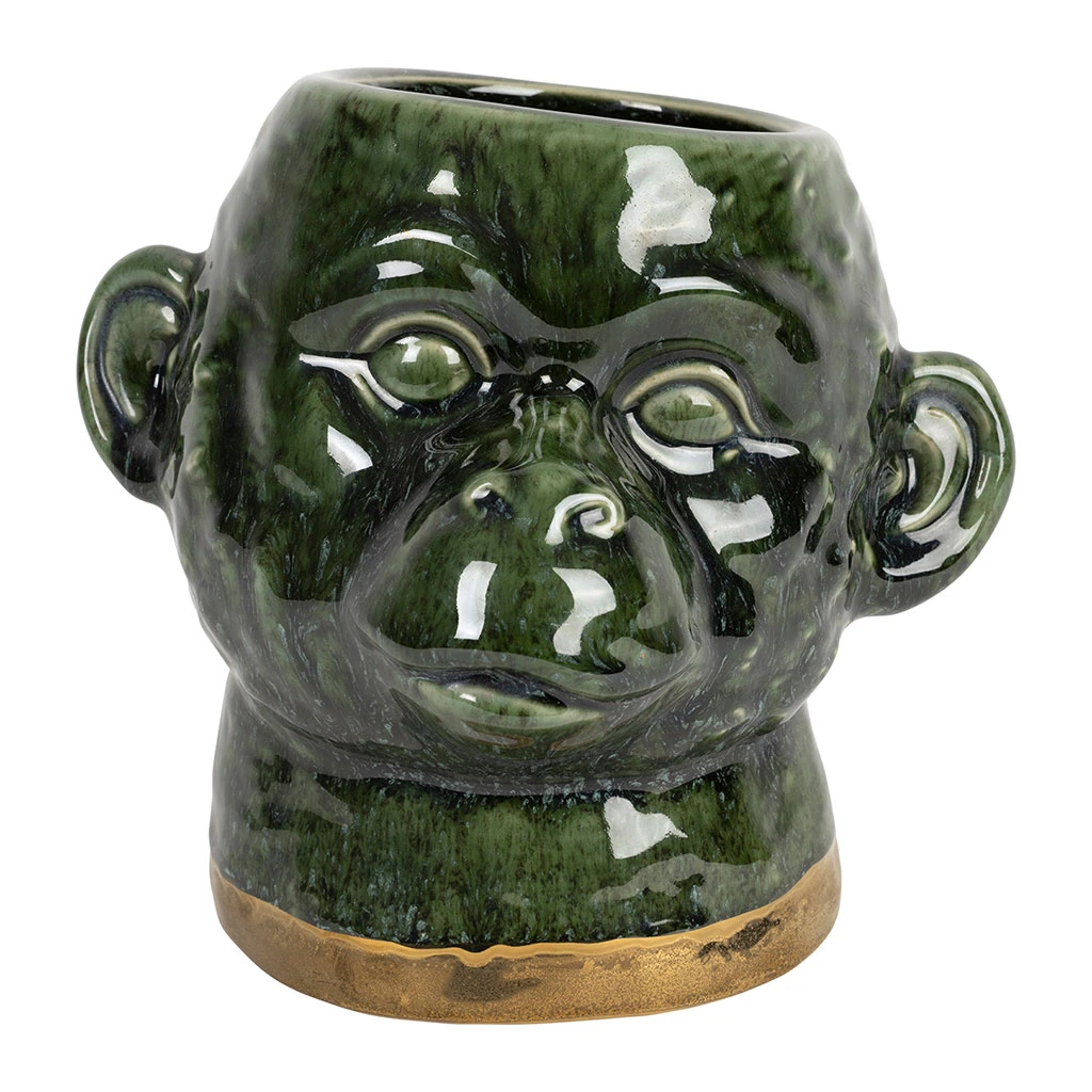 Transformez votre espace avec une touche d’originalité grâce à ce cache pot singe en grès décoratif.