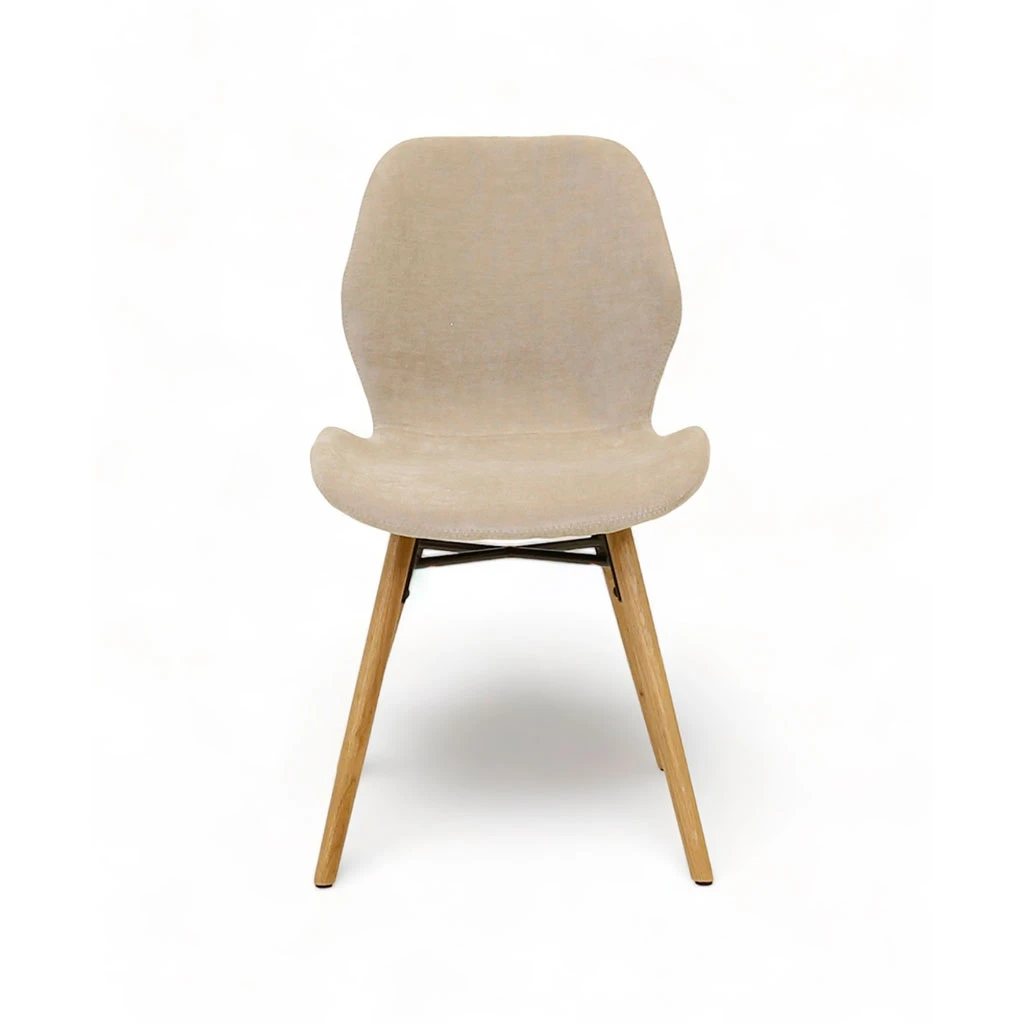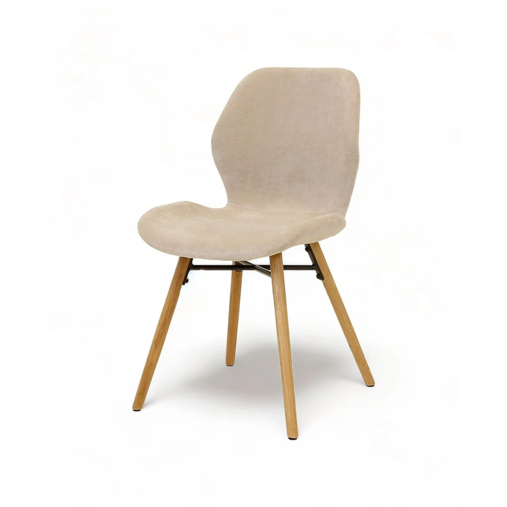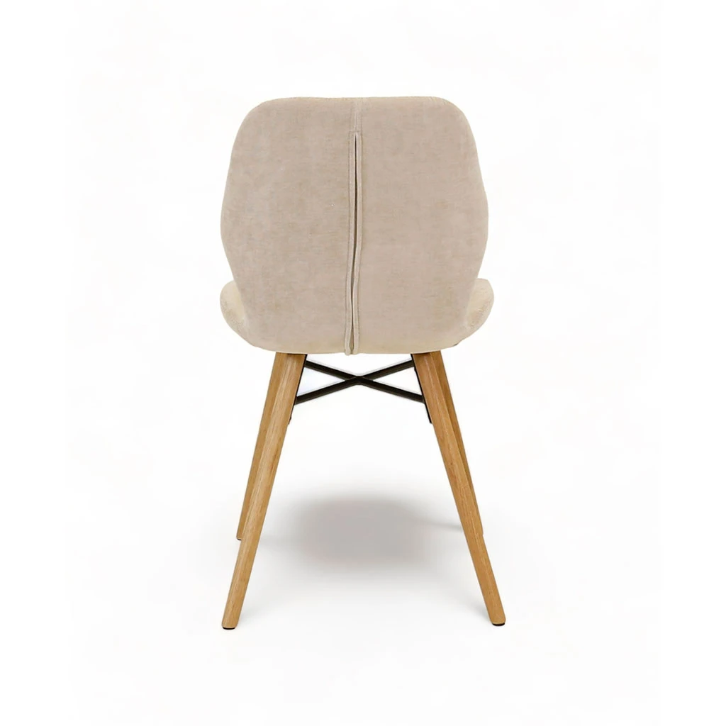 Cette chaise repas est revêtue d’un tissu soft touch, qui invite à la détente et au confort.