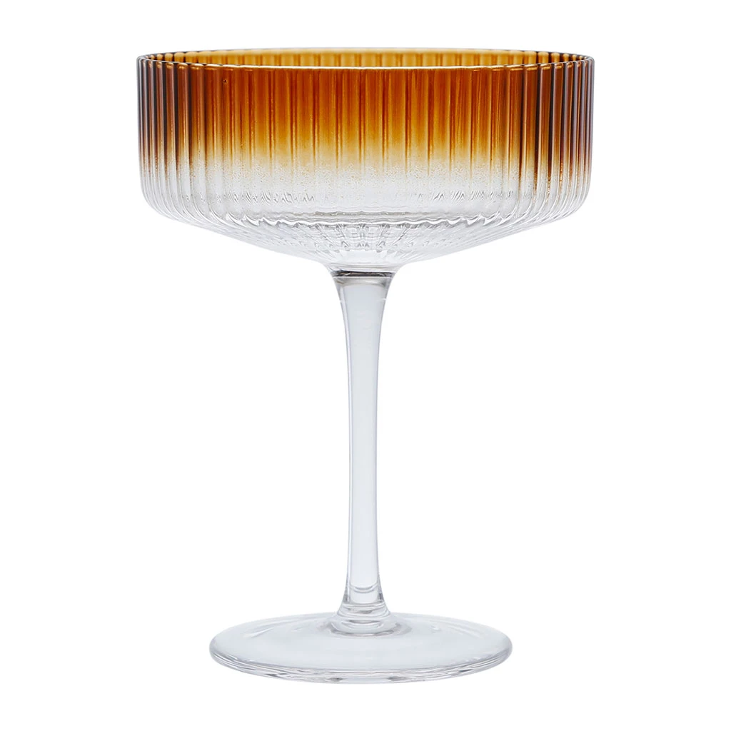 Découvrez notre verre à pied unique en son genre : la coupe de champagne striée en verre ambre.