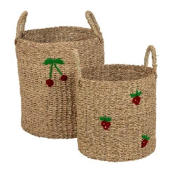 Lot De 2 Paniers En Jonc De Mer Naturel Et Cerise Rouge – Les Fruits