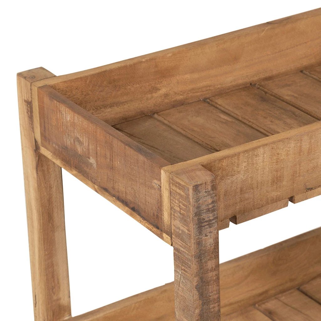 Cette desserte est fabriquée en manguier et acacia recyclés, offrant ainsi un esprit naturel et campagne à votre pièce de vie.