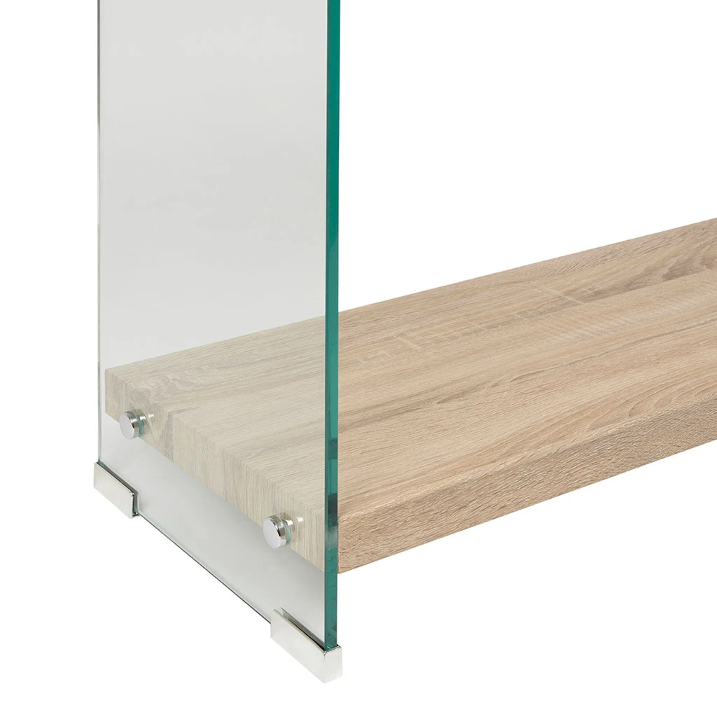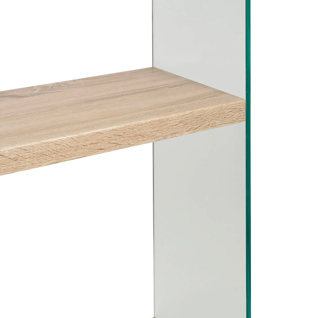 L’étagère à trois niveaux en verre trempé naturel mesure 165 cm de hauteur, offrant à la fois un esthétisme épuré et une fonctionnalité remarquable.