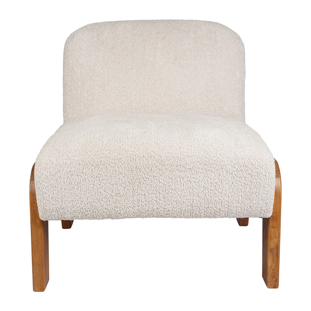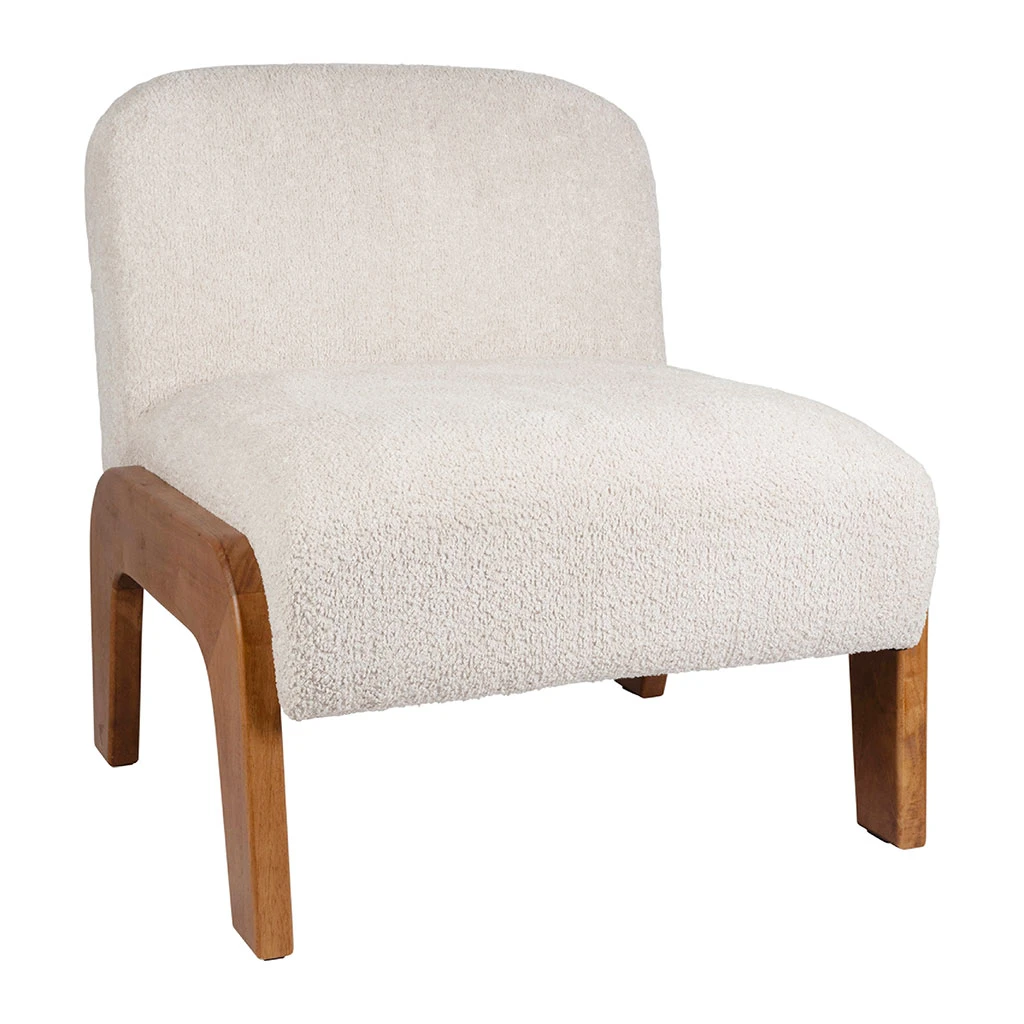 Le tissu écru qui recouvre ce fauteuil est doux au toucher, apportant une sensation agréable à chaque utilisation, qu’il s’agisse de lire un livre captivant ou de discuter avec des amis.