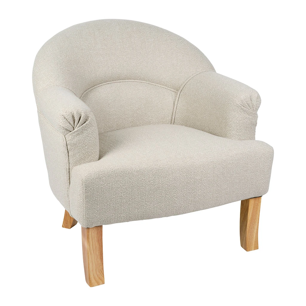 Découvrez le confort absolu avec ce fauteuil en tissu et hévéa beige, un ajout parfait pour insuffler une touche chaleureuse à votre intérieur.