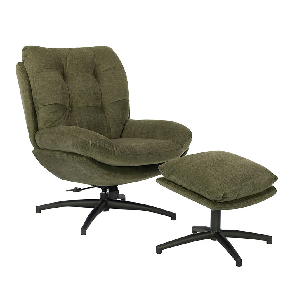 Découvrez le fauteuil avec repose-pieds en tissu vert, un ajout charmant à tout espace de vie.
