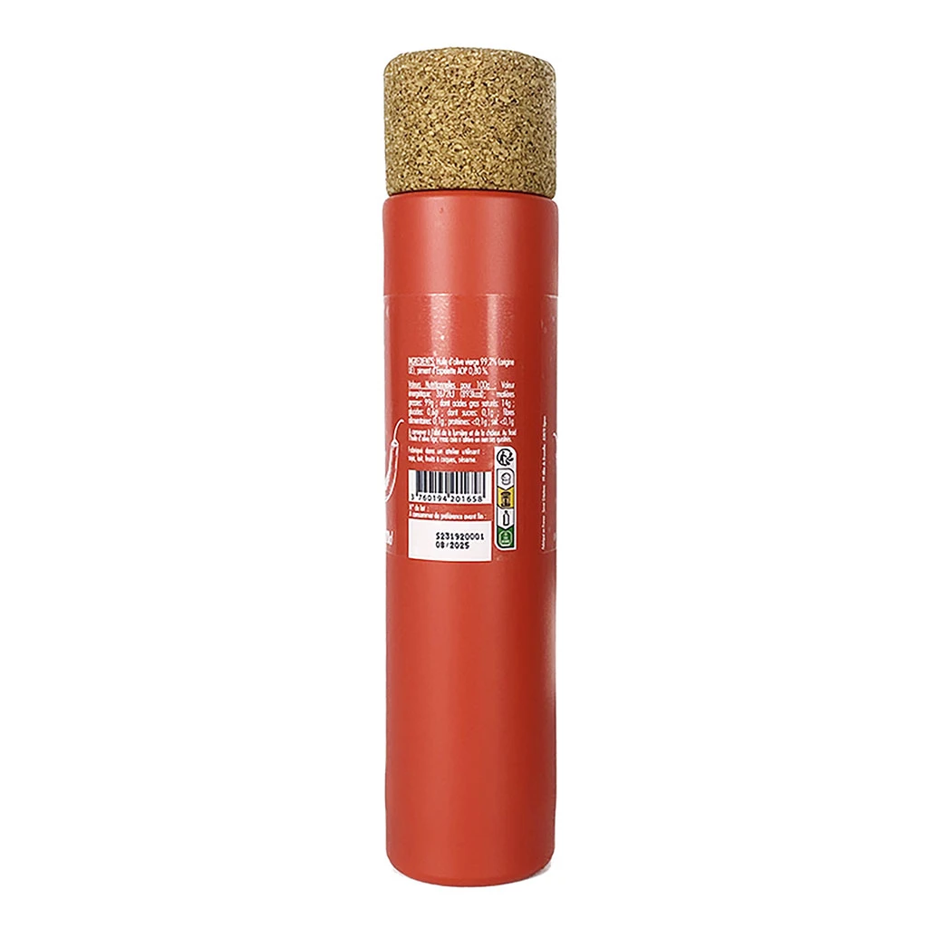 Huile d’olive vierge 99,2% (origine UE), piment d’Espelette AOP 0,80 %.