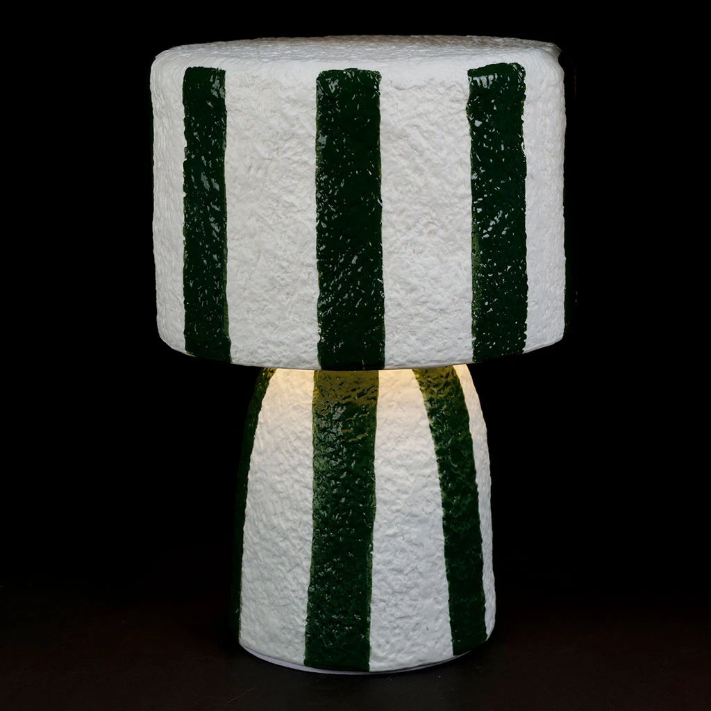 Idéale pour ajouter une ambiance chaleureuse à votre salon, votre chambre ou même votre bureau, cet accessoire de décoration se distingue par son motif rayé en émeraude et blanc, qui attire le regard et inspire.