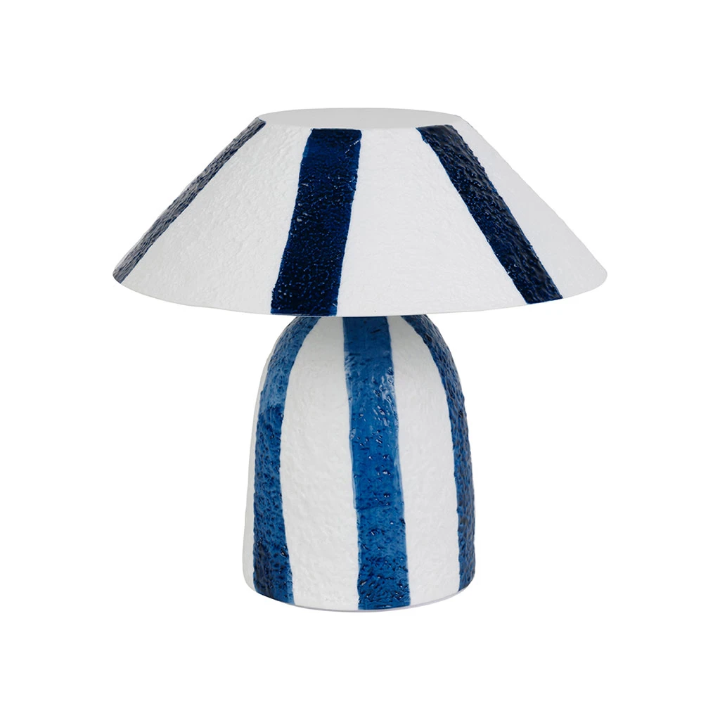Avec ses rayures d’un bleu indigo profond subtilement contrastées par le blanc éclatant, cette pièce de 25 cm de hauteur se distingue par son allure unique et captivante.