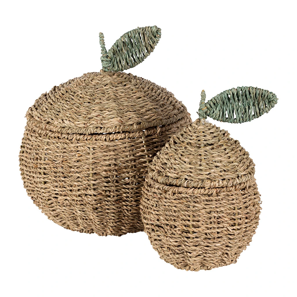 Découvrez ce lot de 2 corbeilles en jonc de mer naturel et vert – Les Fruits, parfaites pour ajouter une touche de style et de praticité à votre décoration.