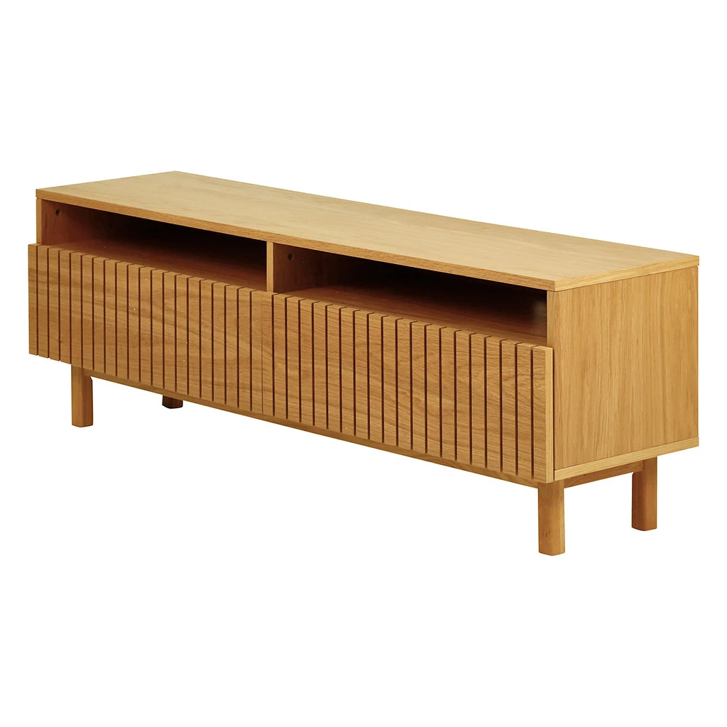 Ce meuble tv de 150 cm est conçu pour s’insérer dans les petites surfaces et offrir des espaces de rangement.