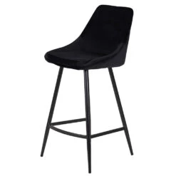 Chaise De Bar En Velours Côtelé Noir H75cm – Ben