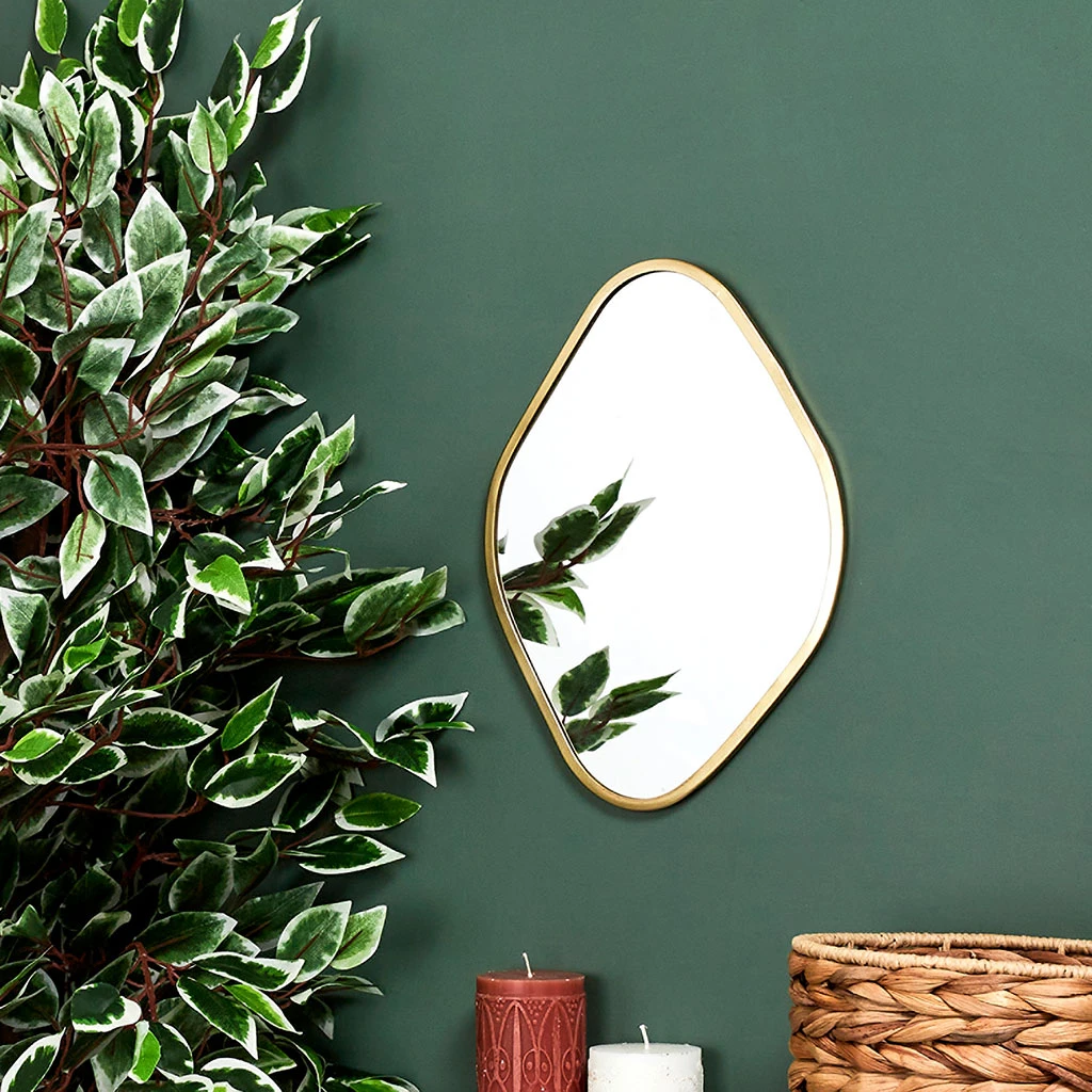 Habillez joliment vos murs de ce miroir tendance au contour doré ! Optez pour une jolie forme losange !