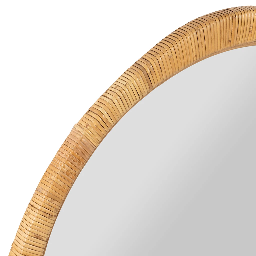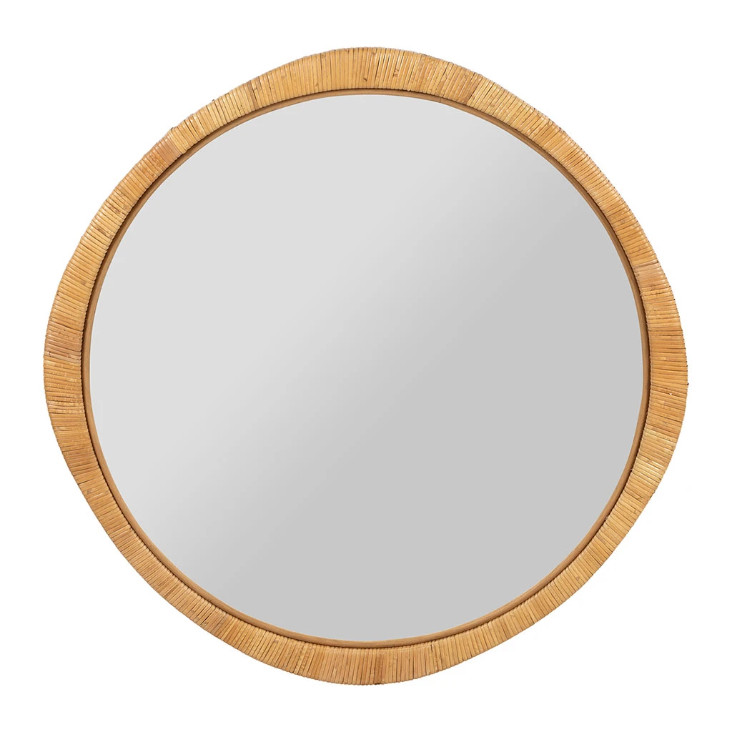 Découvrez notre magnifique miroir rond en rotin d’un diamètre de 87 cm.