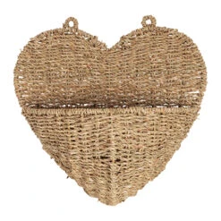Découvrez ce magnifique panier en forme de cœur, réalisé en chaumière naturelle, mesurant 33x32cm.