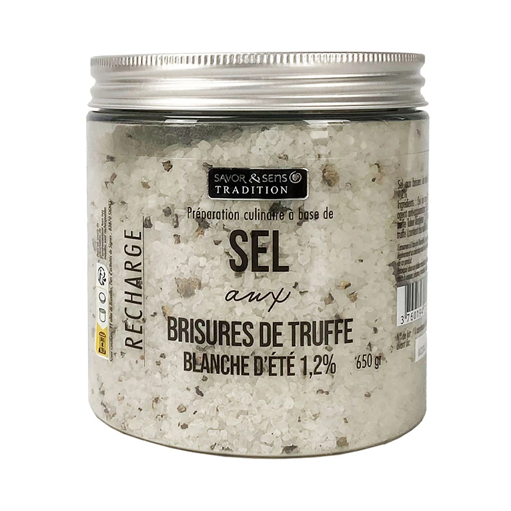 Découvrez une expérience culinaire inédite avec cette recharge de sel infusé à la brisure de truffe blanche d’été 1,2%.