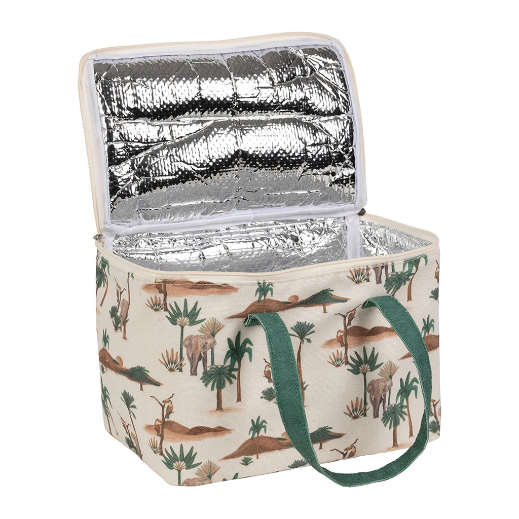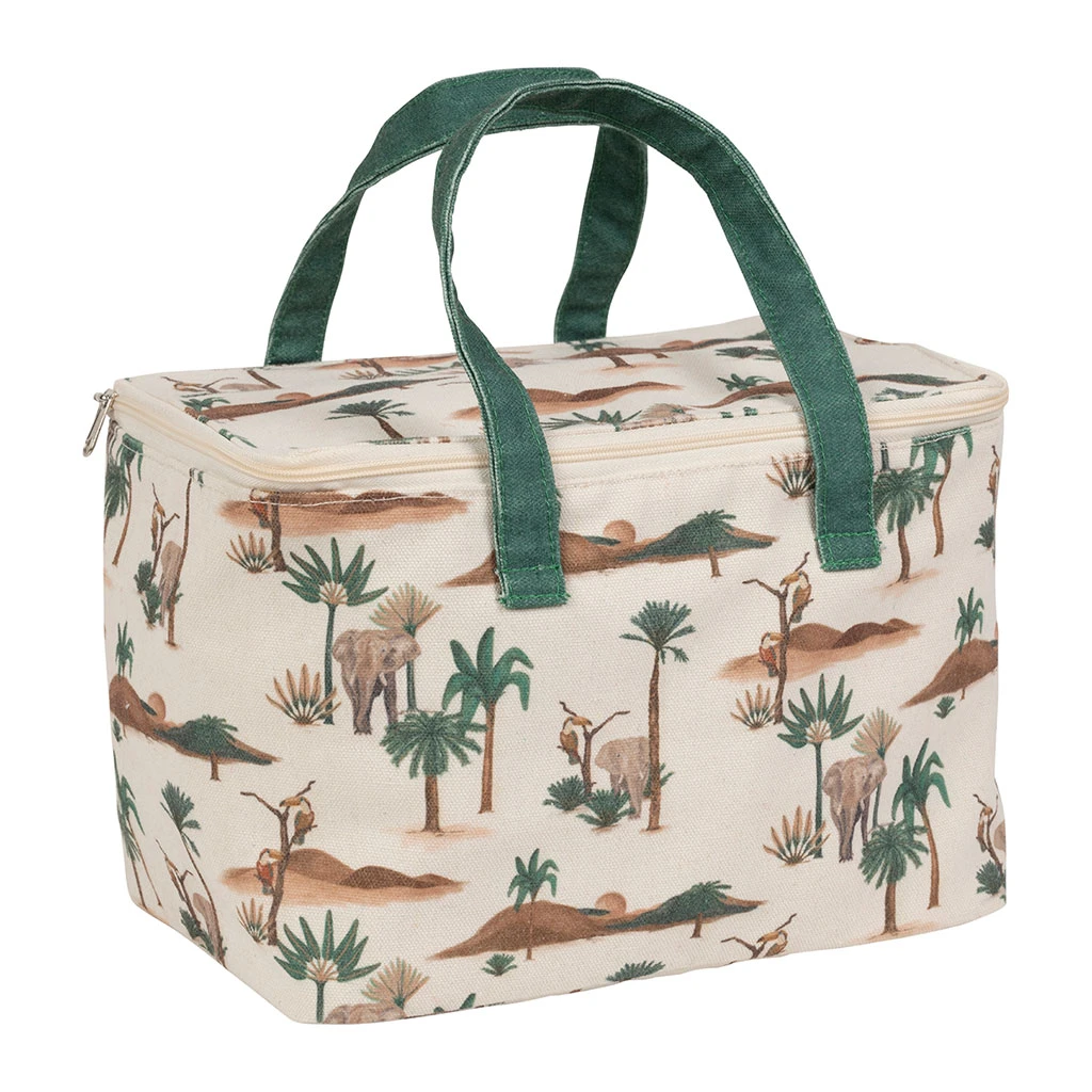 Découvrez le plaisir d’emporter vos repas faits maison partout avec notre sac isotherme en coton brun et vert.