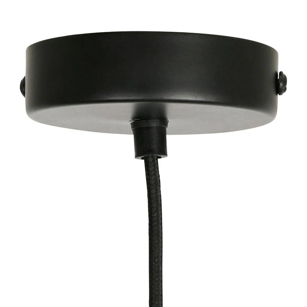 Avec ses dimensions de 30 cm de diamètre et 36 cm de hauteur, cette suspension en noir et écru apporte une touche de modernité à votre décoration.