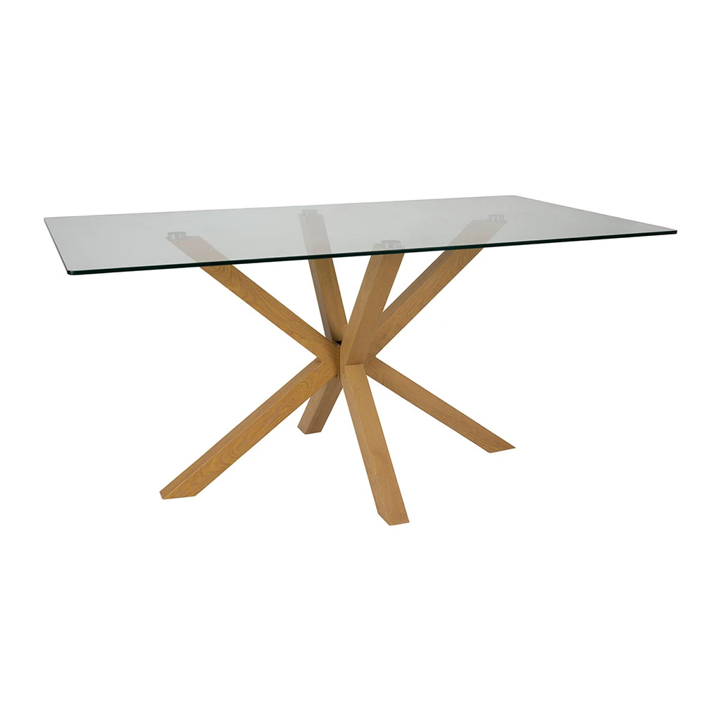 Cette pièce maîtresse allie un plateau en verre trempé solide à une structure en métal naturel, créant un mélange attrayant de durabilité et de design épuré.