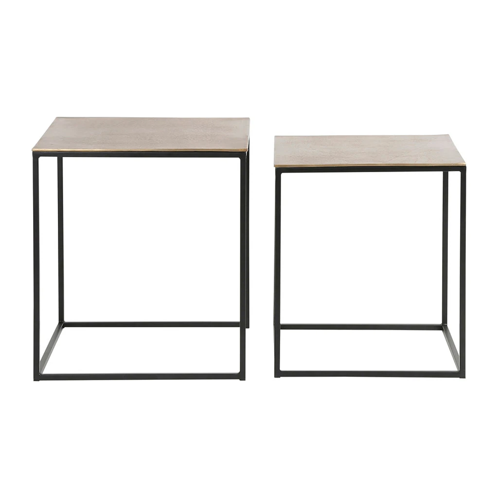 Équipez votre salon de la table basse gigogne carrée Felia en aluminium et fer doré, parfaite pour un intérieur classique chic ou contemporain.