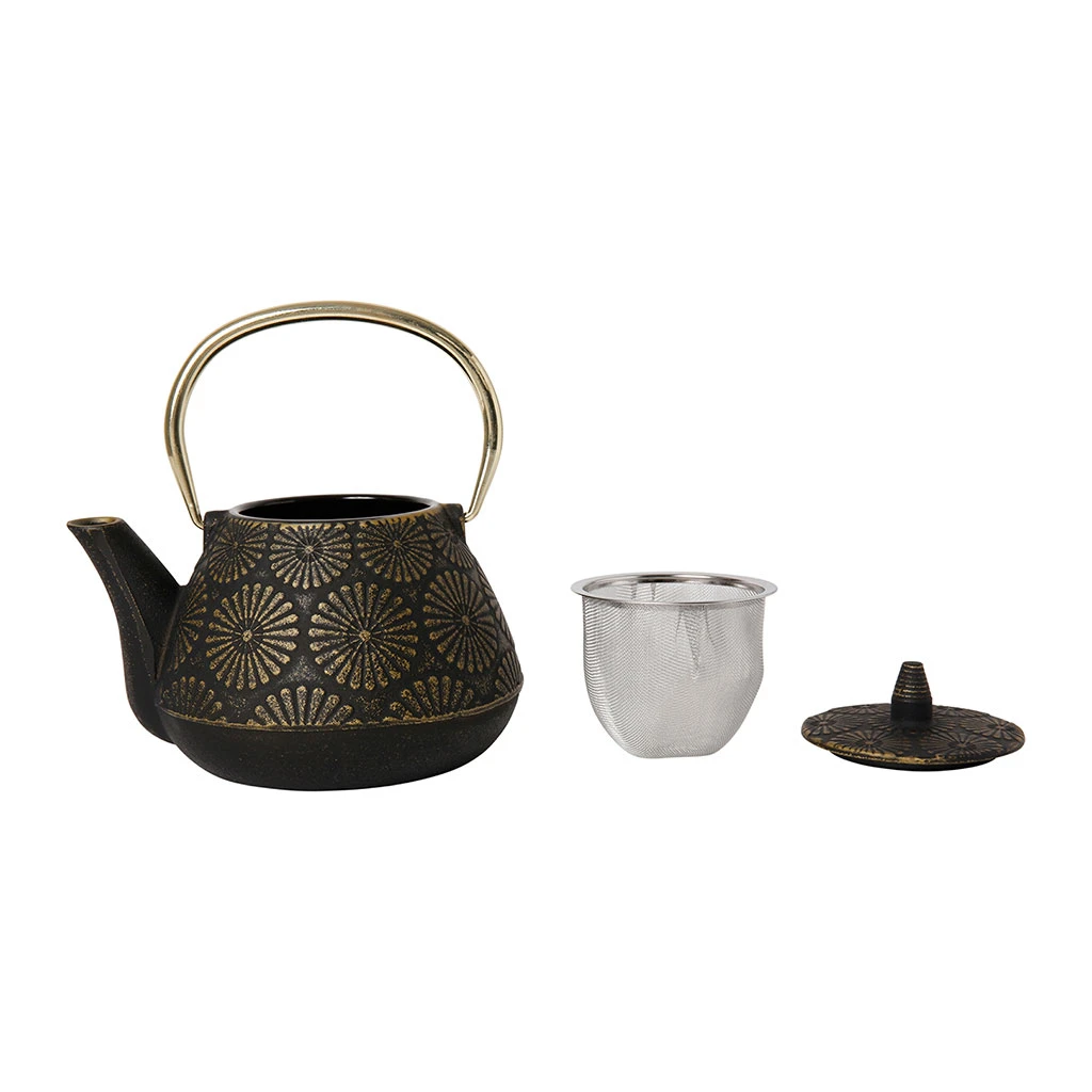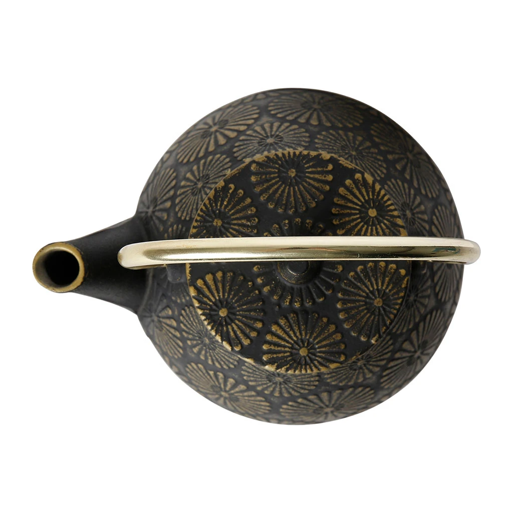 Découvrez l’expérience unique de savourer votre infusion préférée avec notre somptueuse théière en fonte noir et doré, inspirée du motif emblématique du lotus.