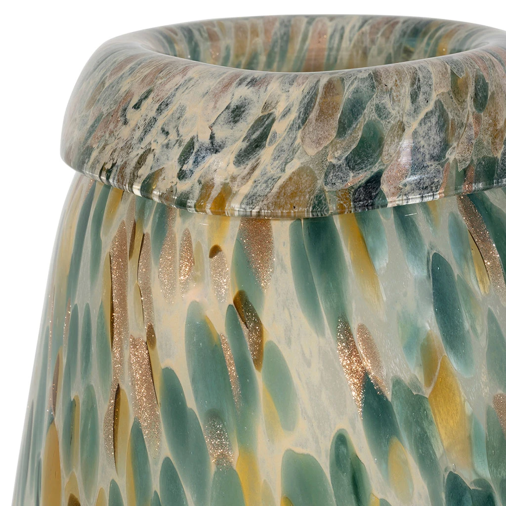 Son verre émeraude distinctif est magnifié par des accents dorés, qui captent la lumière pour créer une atmosphère chaleureuse et accueillante.