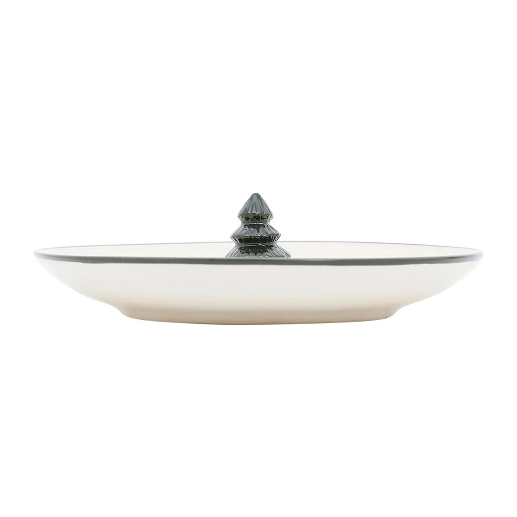Ajoutez une touche d’élégance fonctionnelle à votre espace avec le vide-poche « Mon Sapin » en grès écrue et vert.